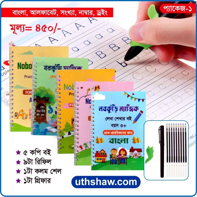 - আপনার বাবুর হাতের লিখা সুন্দর ও সোজা করার এক মেজিক্যাল বই হল Nobokuri Magic Handwriting Practice Books.